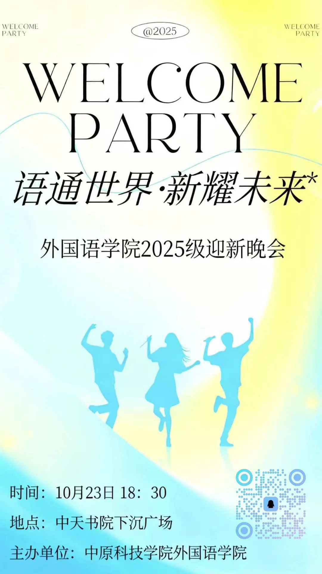 10月23日,让我们相聚中天书院下沉广场,在悠扬歌声与欢声笑语中破冰相识,于趣味互动、深度交流里跨越语言与文化的边界。共同奔赴充满希望的未来!期待每一位外国语学院学子的参与,一起书写青春的美好篇章!
